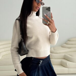 Whole Love Cable Knit Turtleneck Sweater Cream