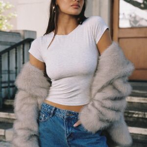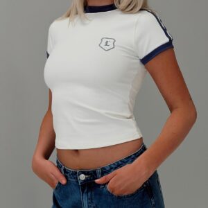 • Contrast lining detail, round neckline, cap sleeves, crop fit